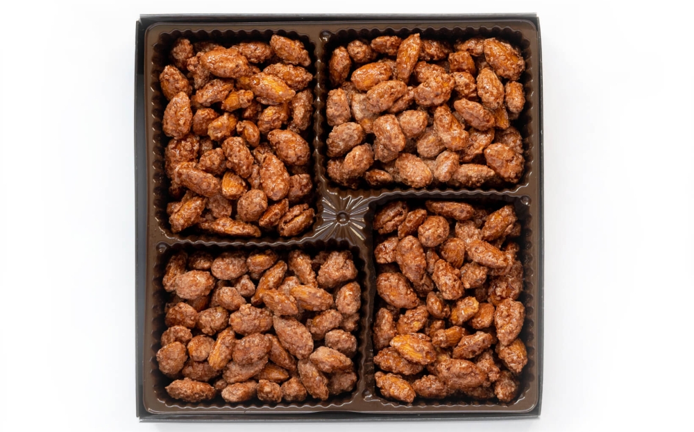 This 25-oz. gift box features our signature cinnamon glazed products; almonds, pecans, and cashews. Beautifully packaged in a gold Totally Nutz gift box and perfect for any gift-giving occasion. All gift boxes are roasted fresh and sealed in the box for maximum freshness.