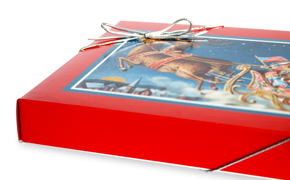 Your choice of two freshly roasted, cinnamon glazed almonds, pecans, or cashews, in a Santa Sleigh box, This is the perfect Holiday gift for family, friends, employees, and clients, All gift boxes contain freshly roasted products and are sealed in the box for maximum freshness.